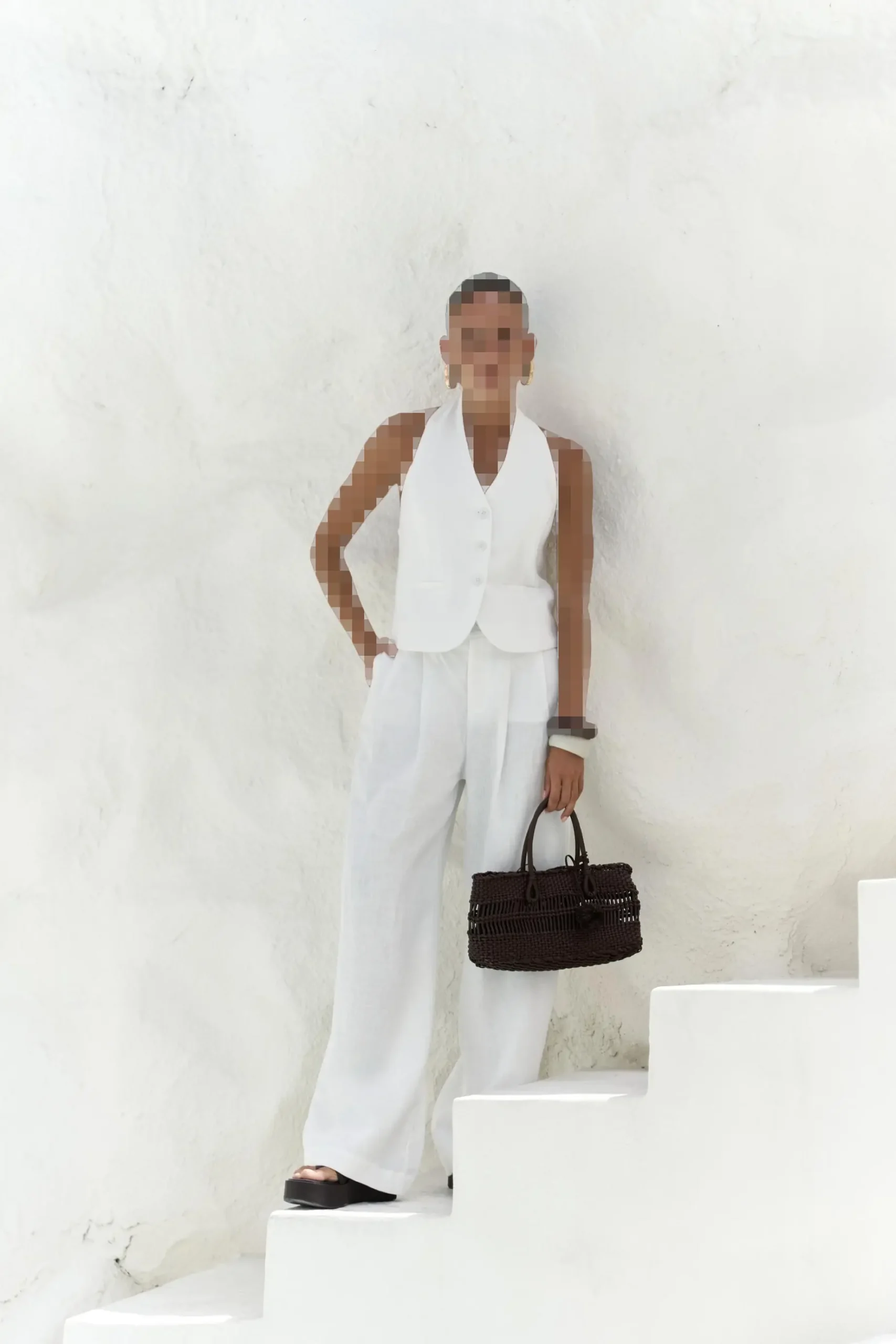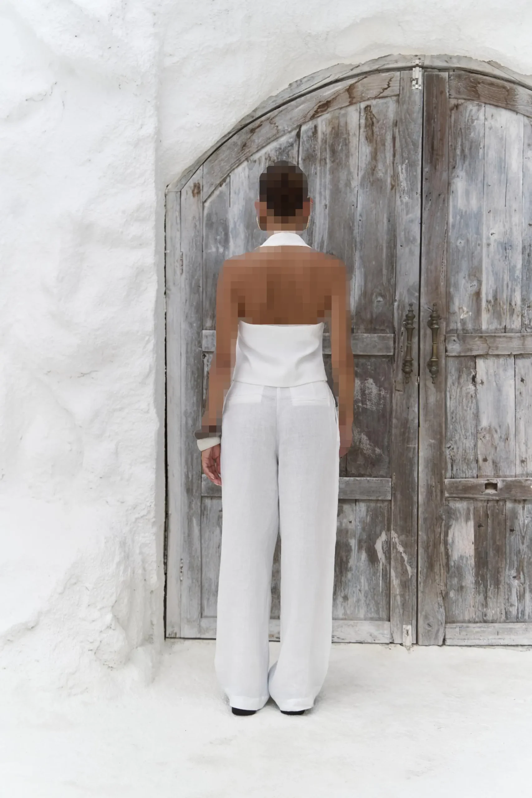 Dena Backless White Linen Vest and Trouser Set