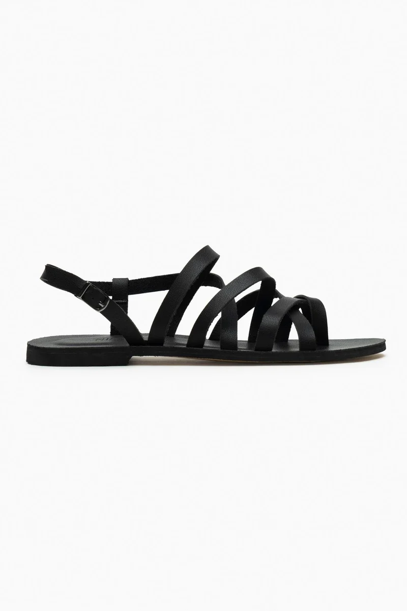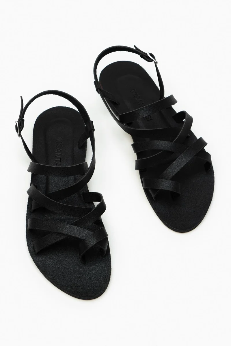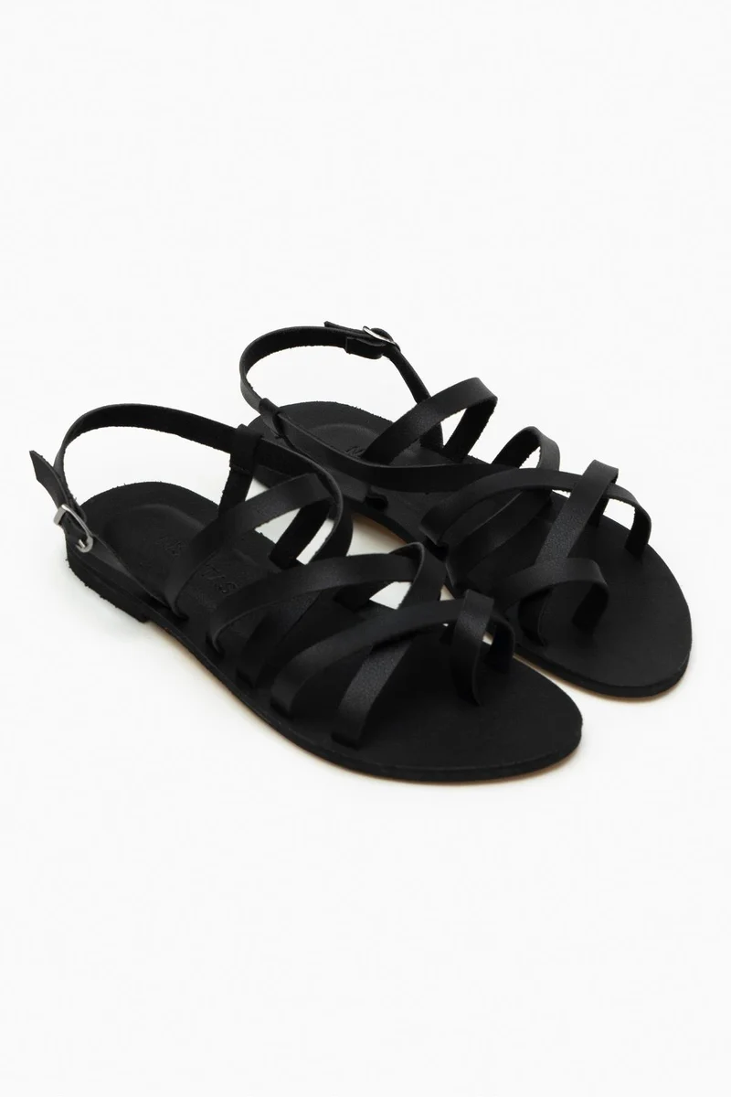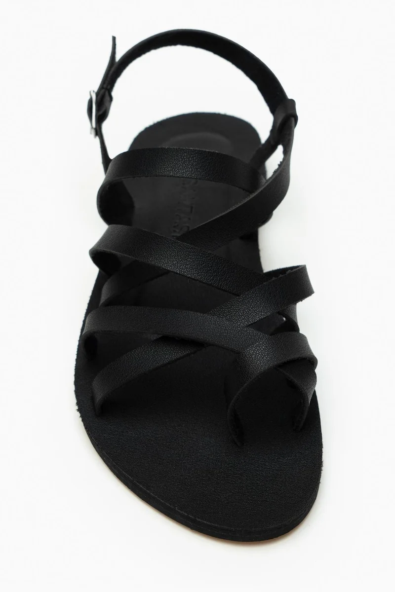 Carla Black Matte Ankle Strap Flip Flop Flat Sole Women’s Bodrum Sandals