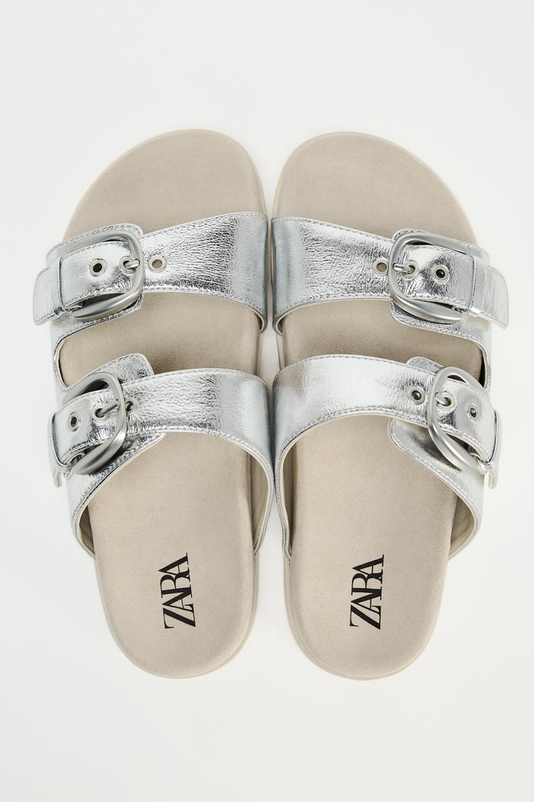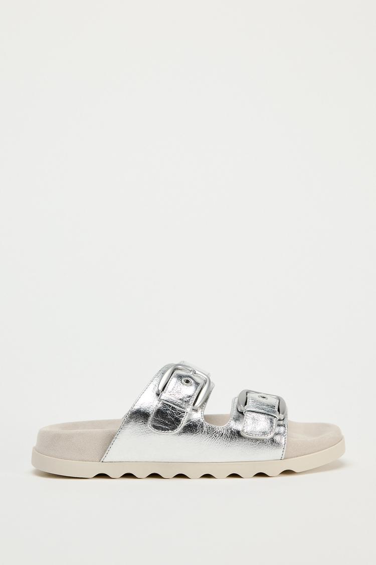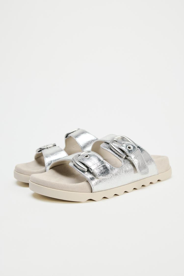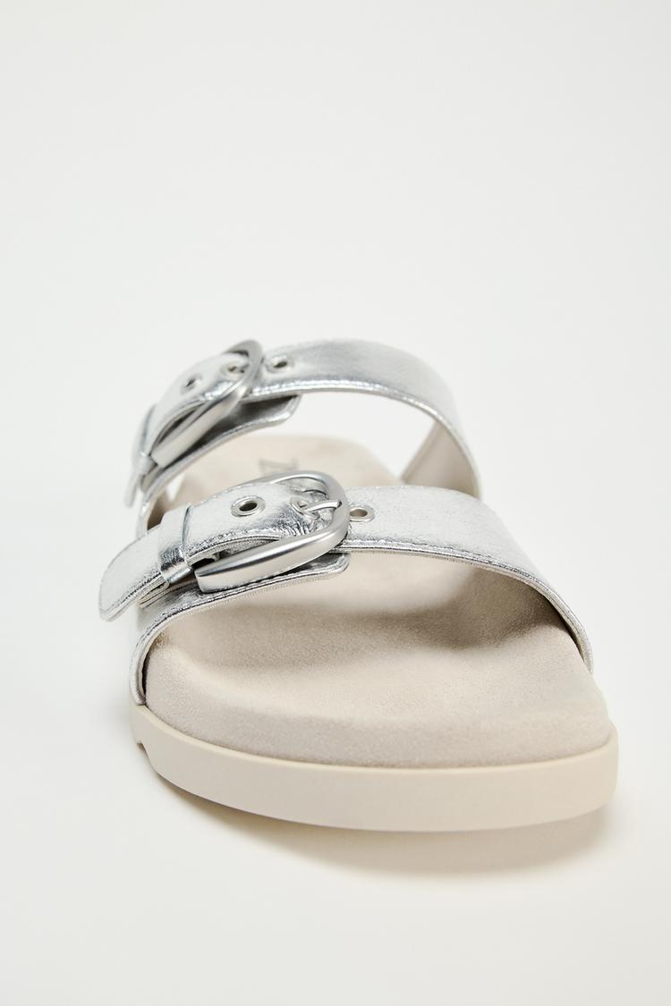 BUCKLED FLAT SLIDER SANDALS