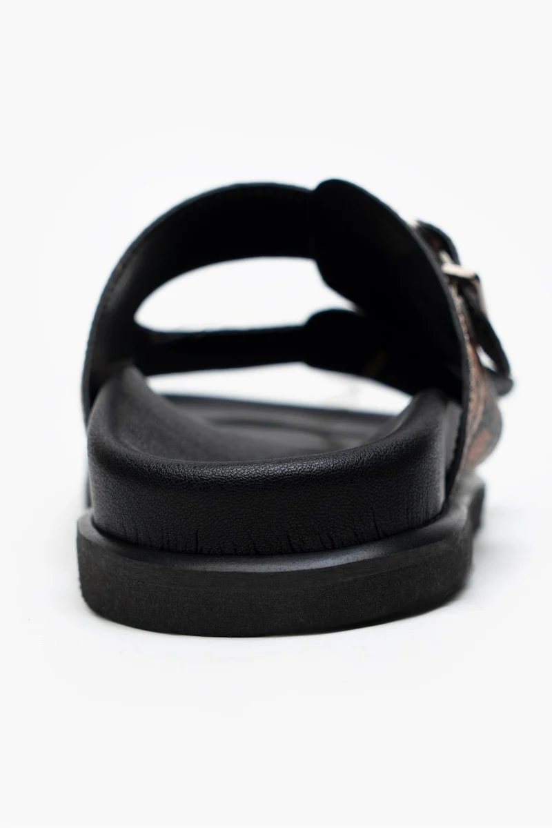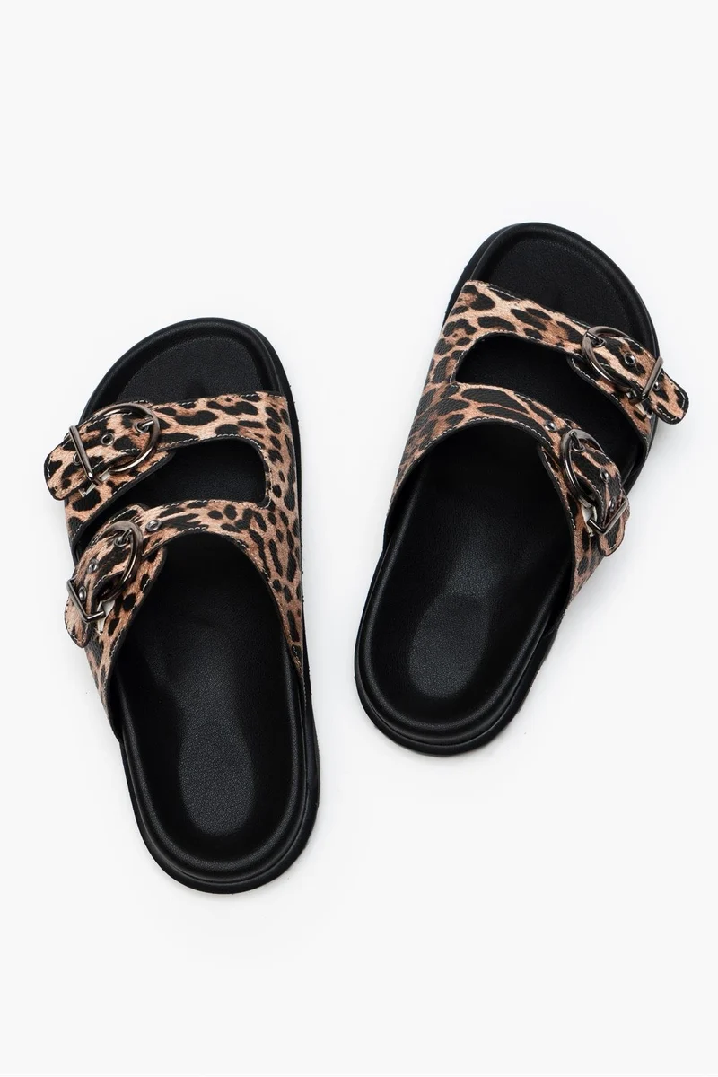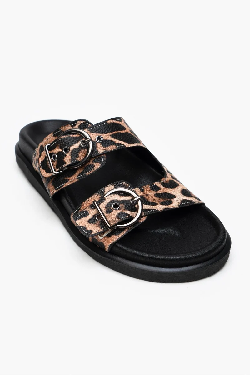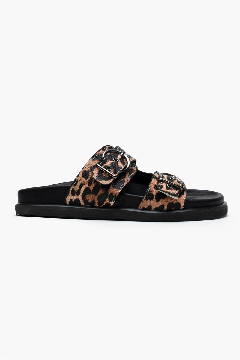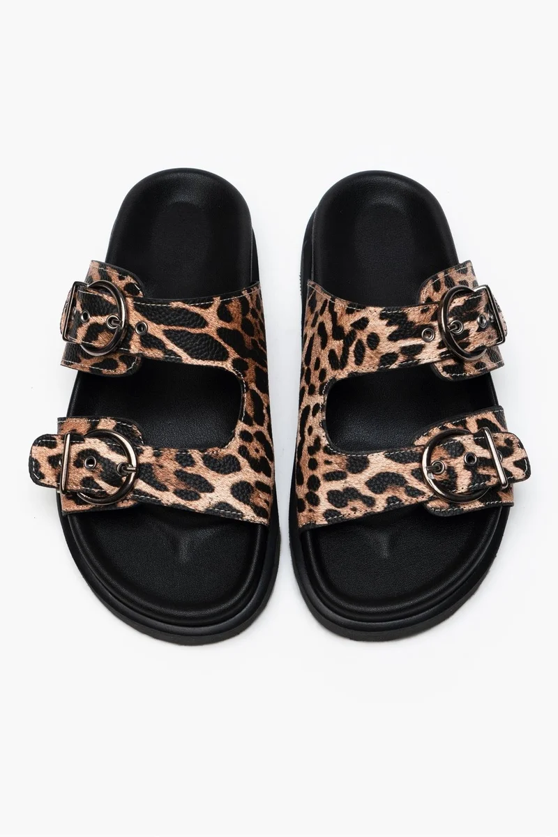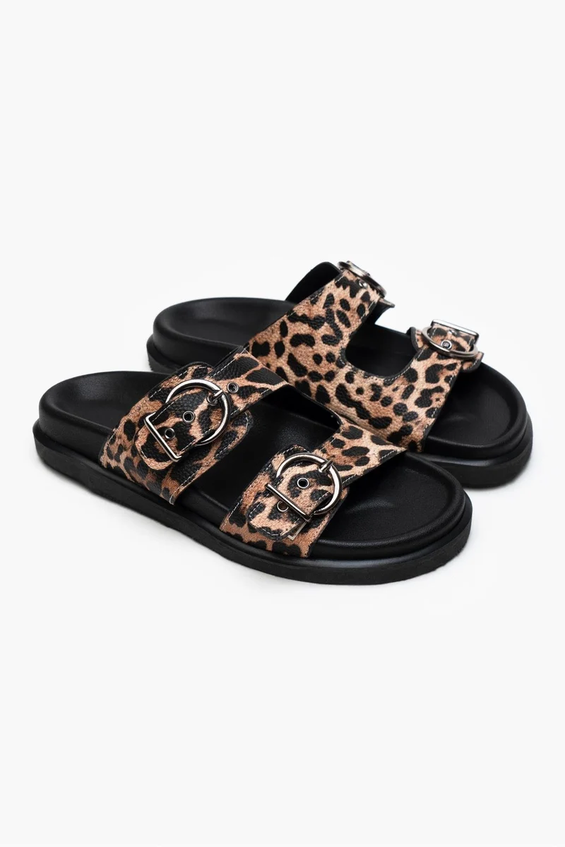 صندل زنانه دو سگک مات آلفا پلنگی کف تخت
