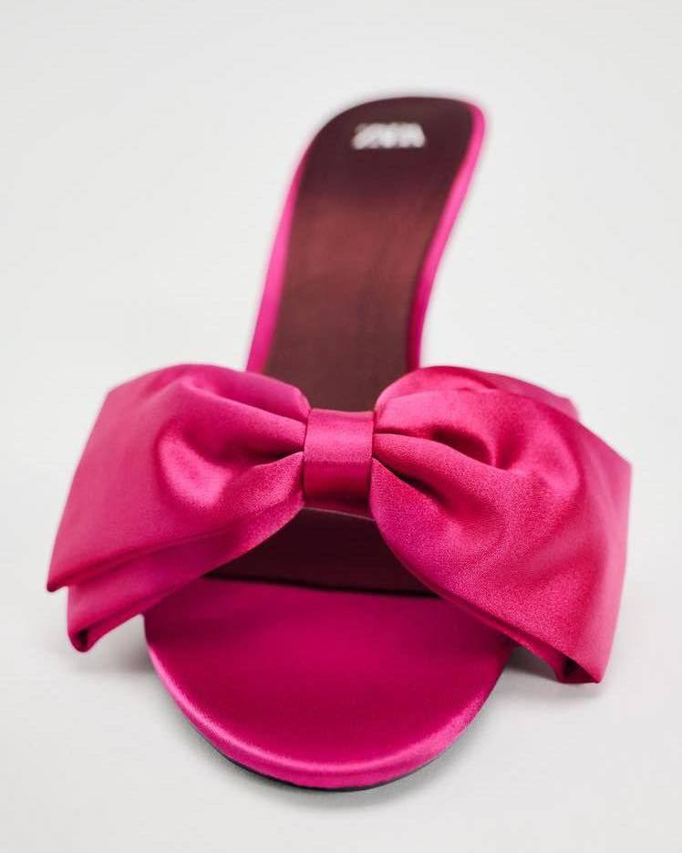 SATIN HIGH-HEEL SANDALS WITH BOW