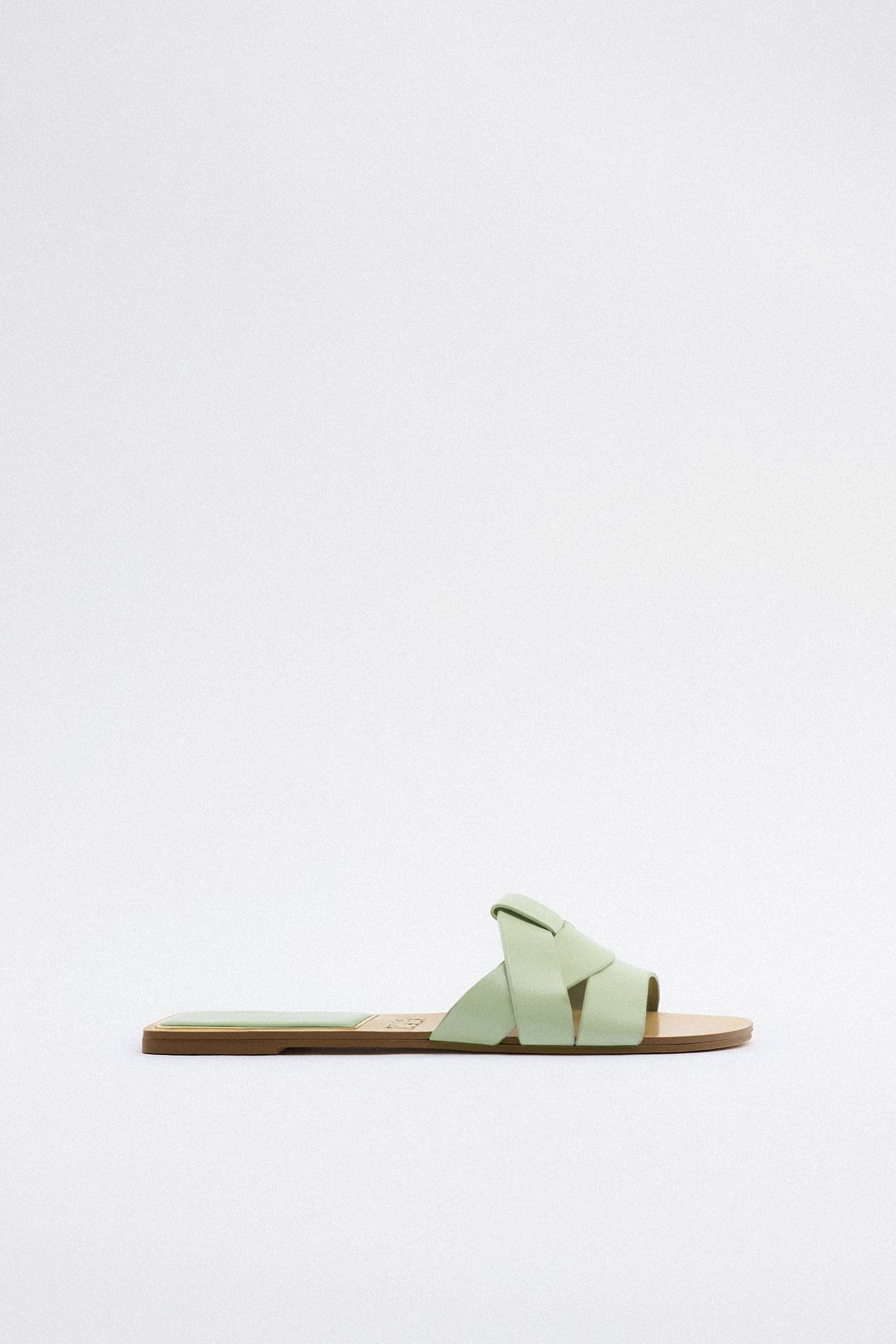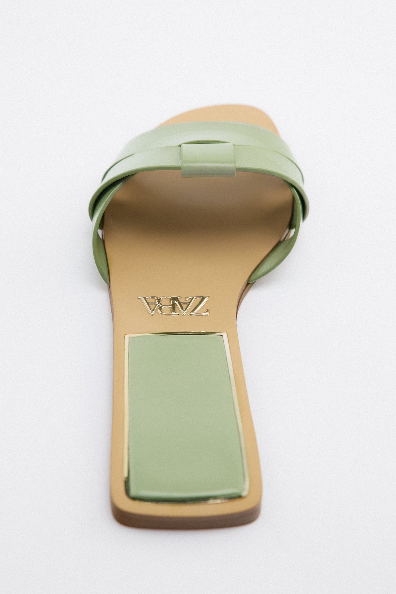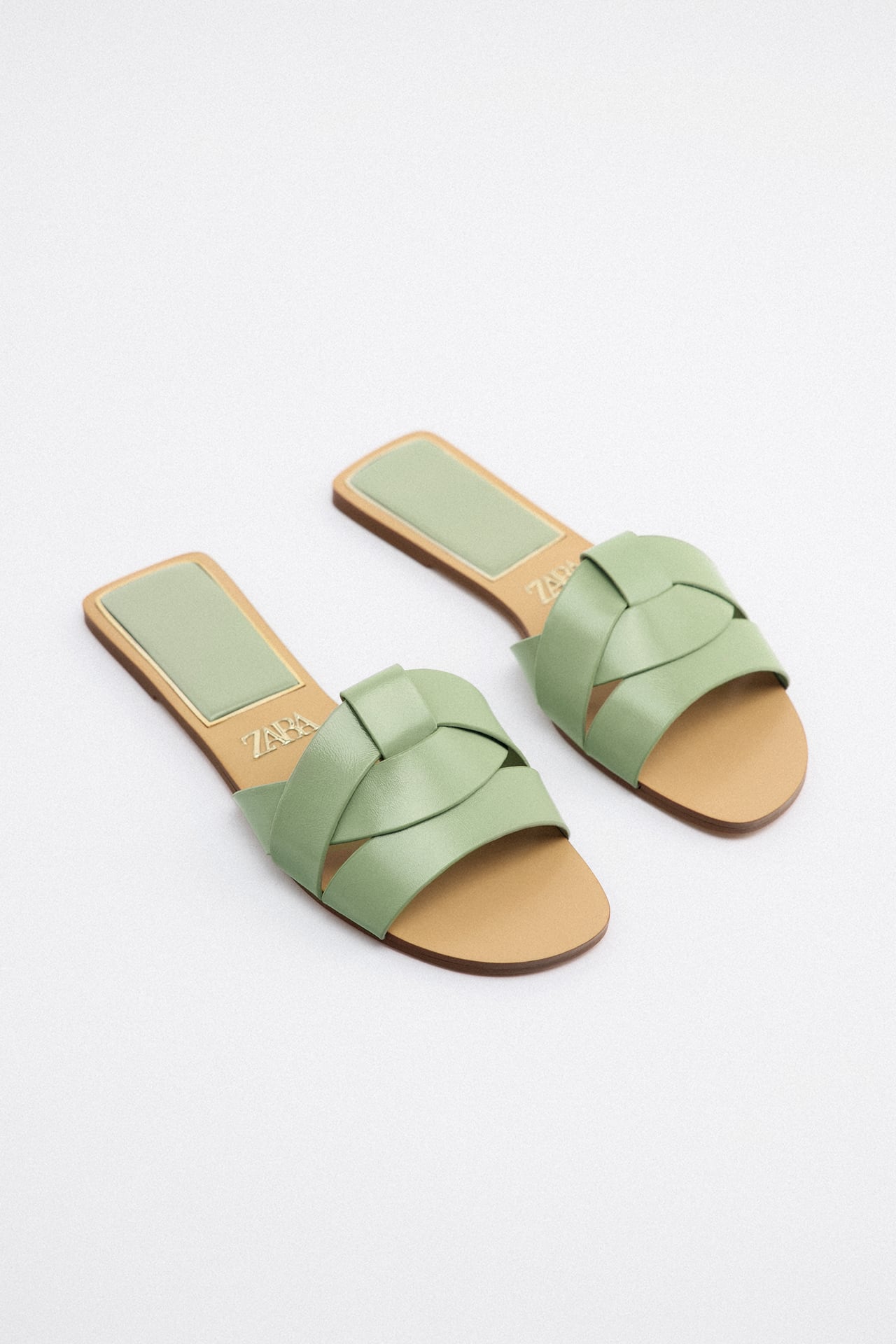 صندلهای چرمی تخت رویهدار با بند ضربدری در جلو.