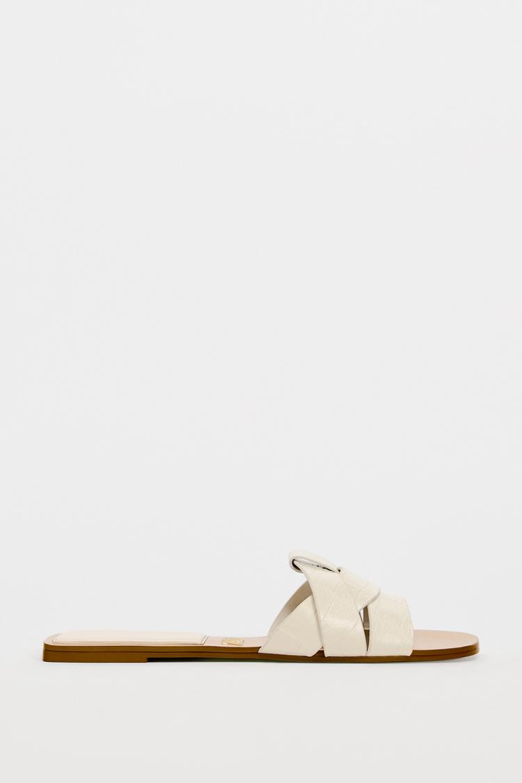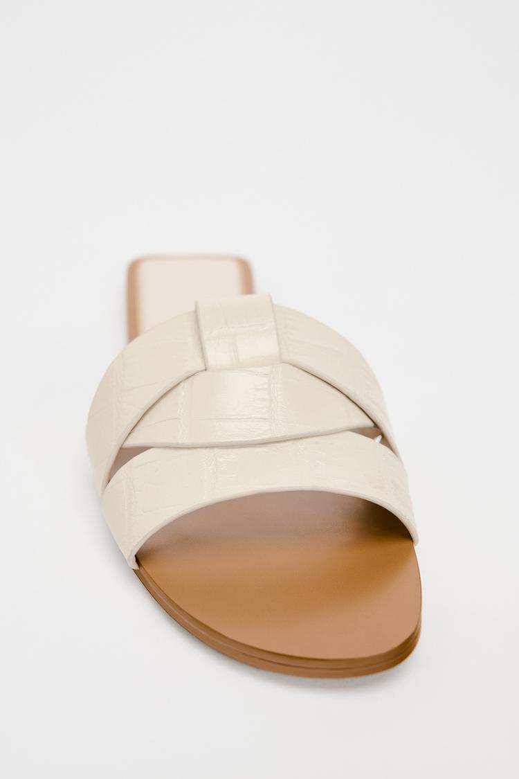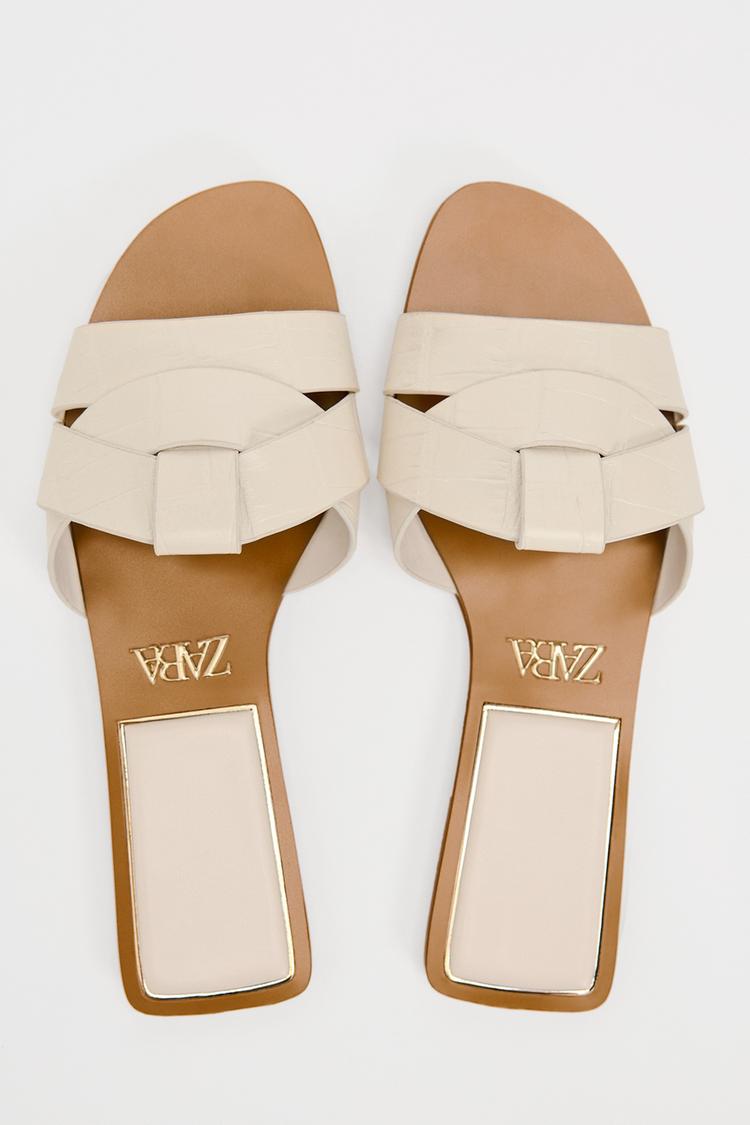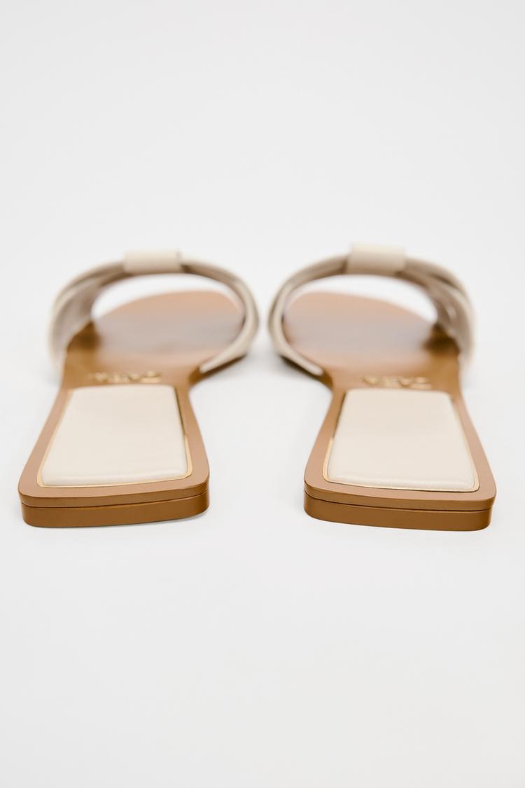 صندلهای چرمی تخت رویهدار با بند ضربدری در جلو.