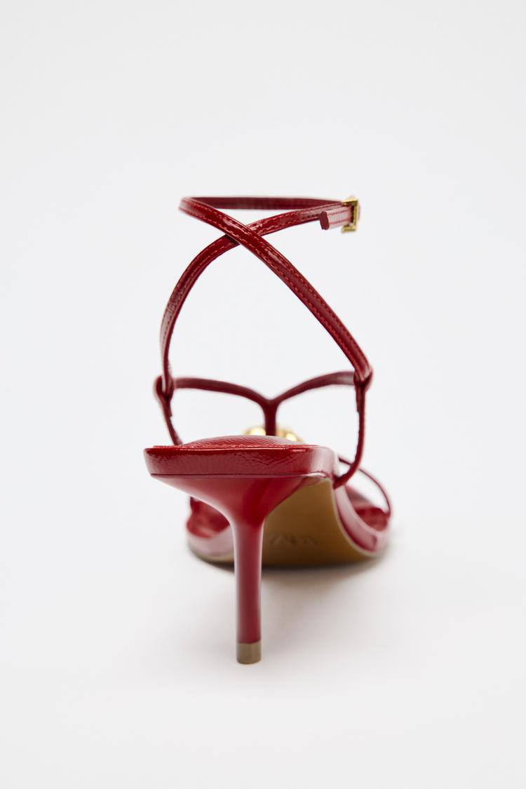 LEATHER HEEL SANDALS WITH STRAPS AND EMBELLISHMENT