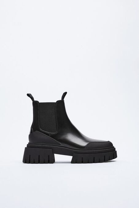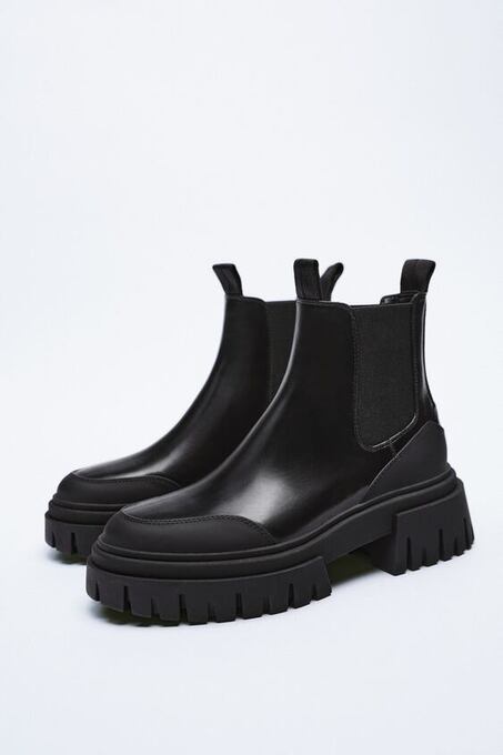 low heeled black lug sole ankle boots