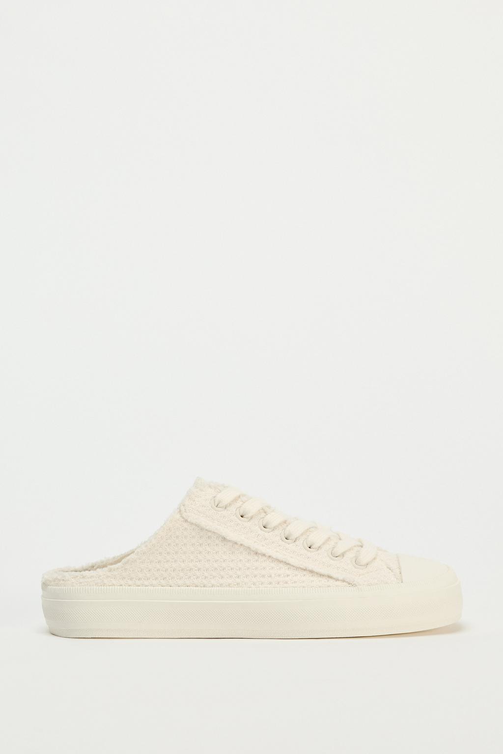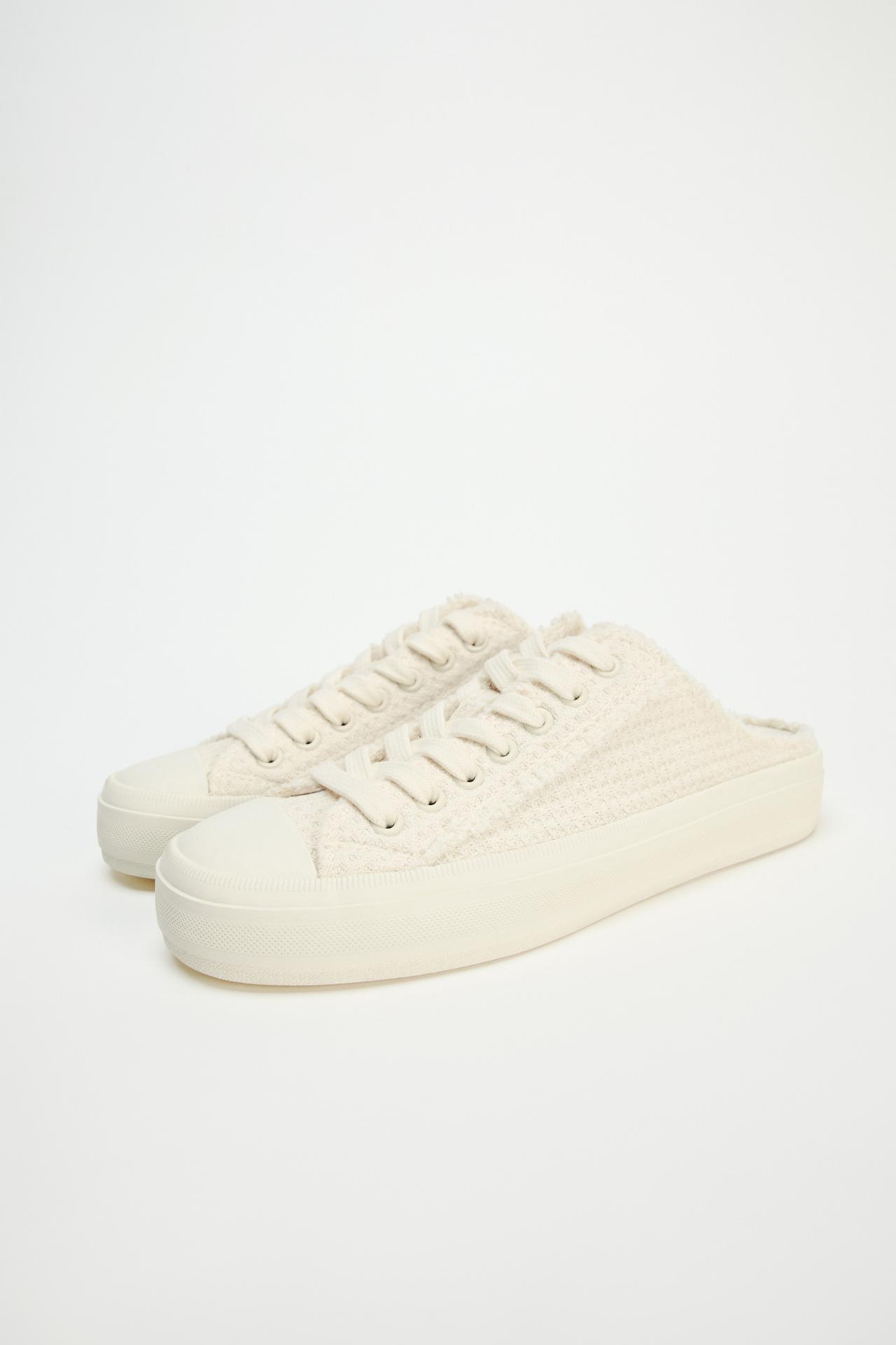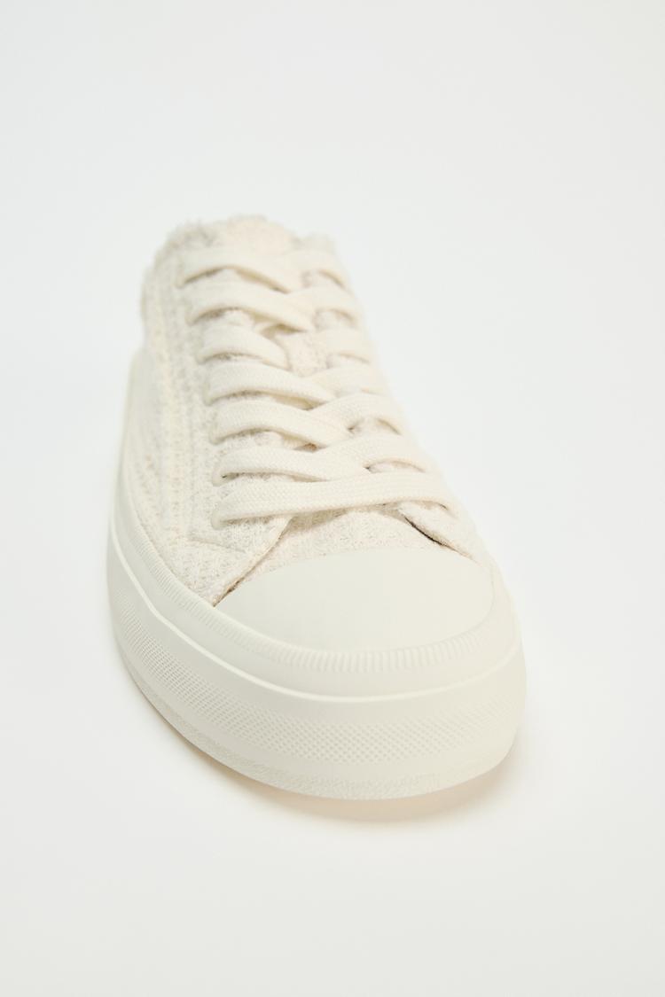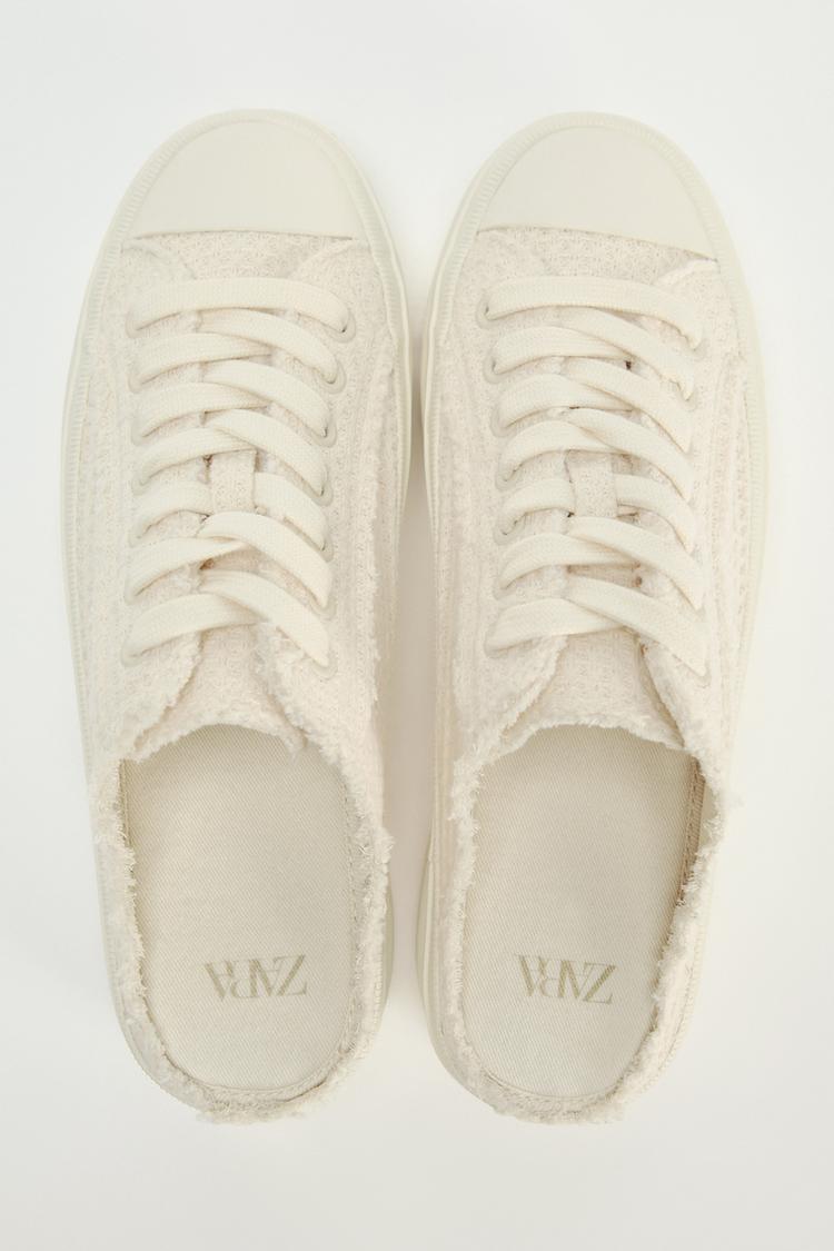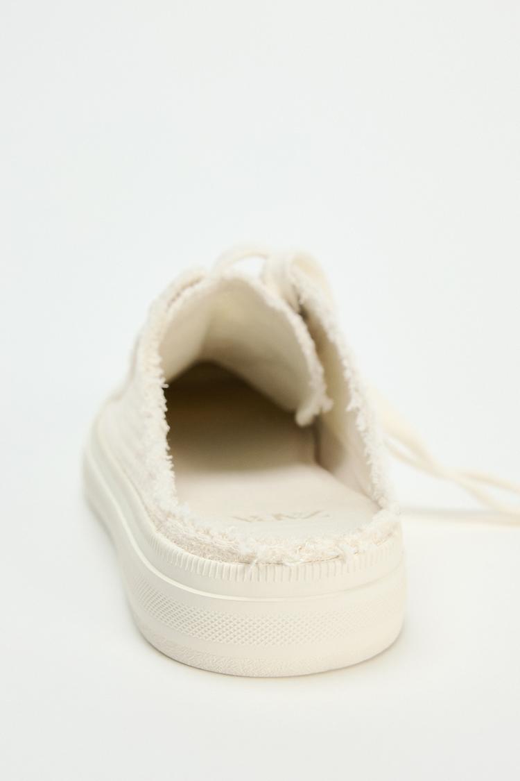 کفشهای کتانی پارچهای با طرح ساییدگی. پنجه لاستیکی. بند توری.