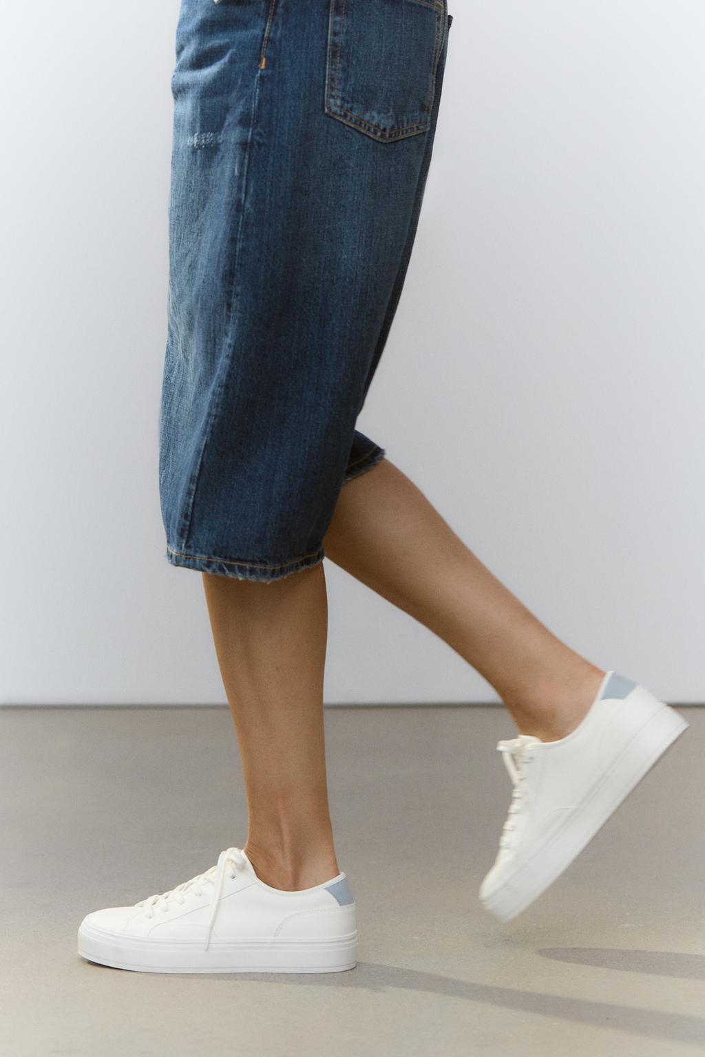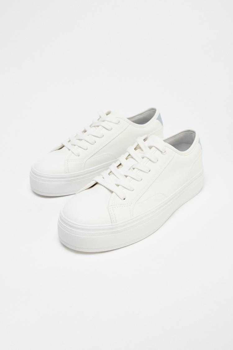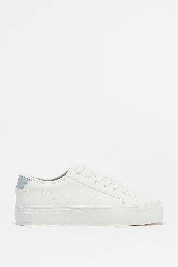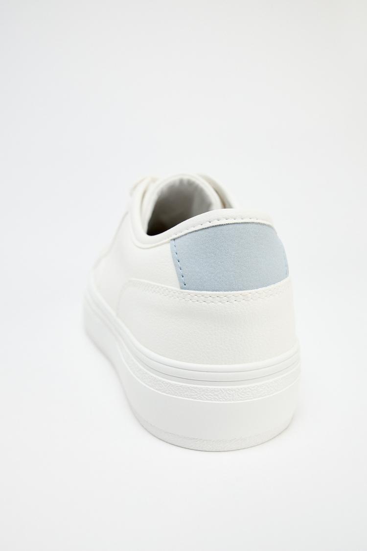 کفشهای تنیس با برجستگی در قسمت رویه. قسمت عقب با رنگ متضاد. بسته شدن با بند.