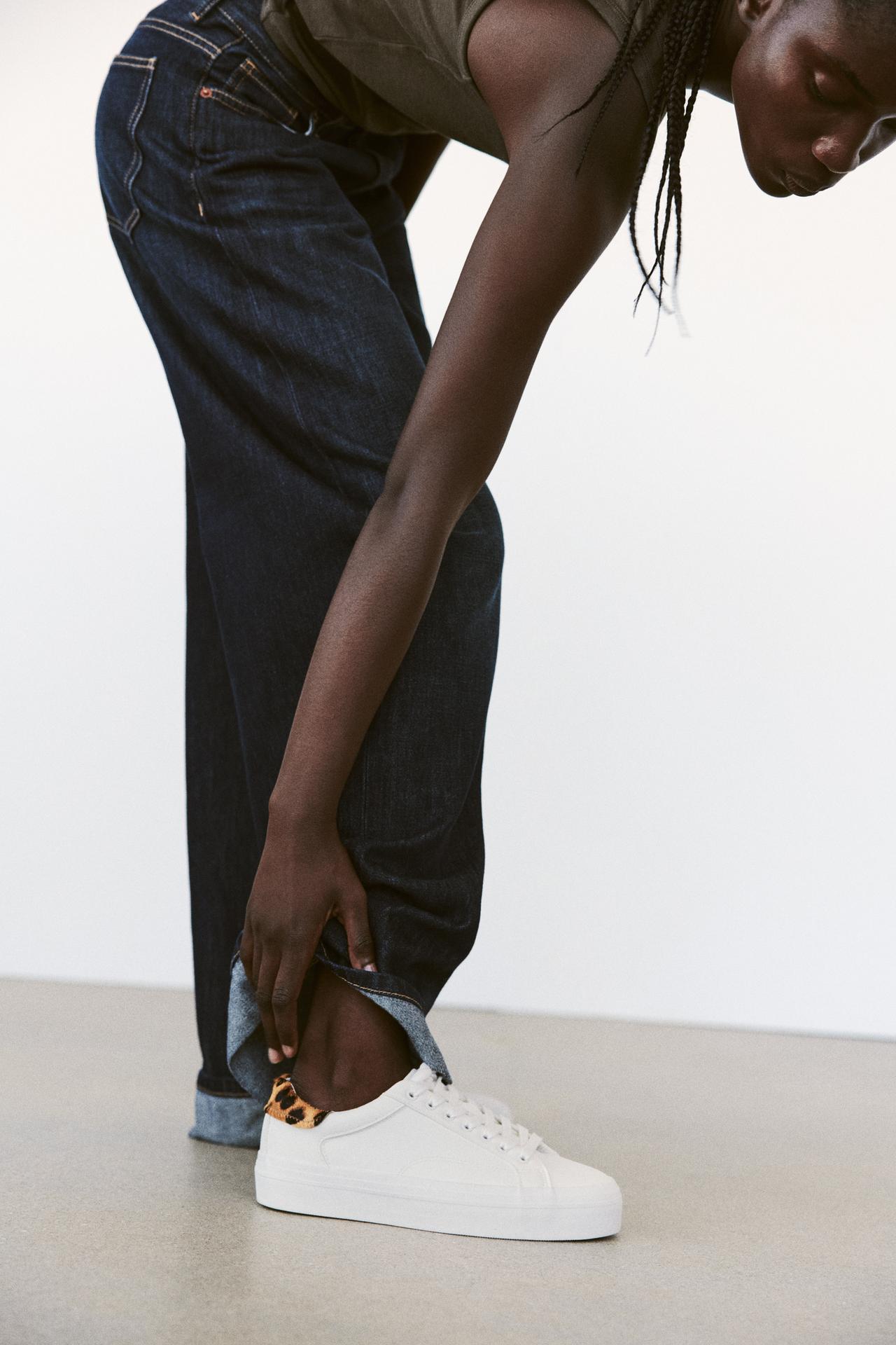 کفشهای کتانی با طرح پاشنه حیوانات. بنددار.