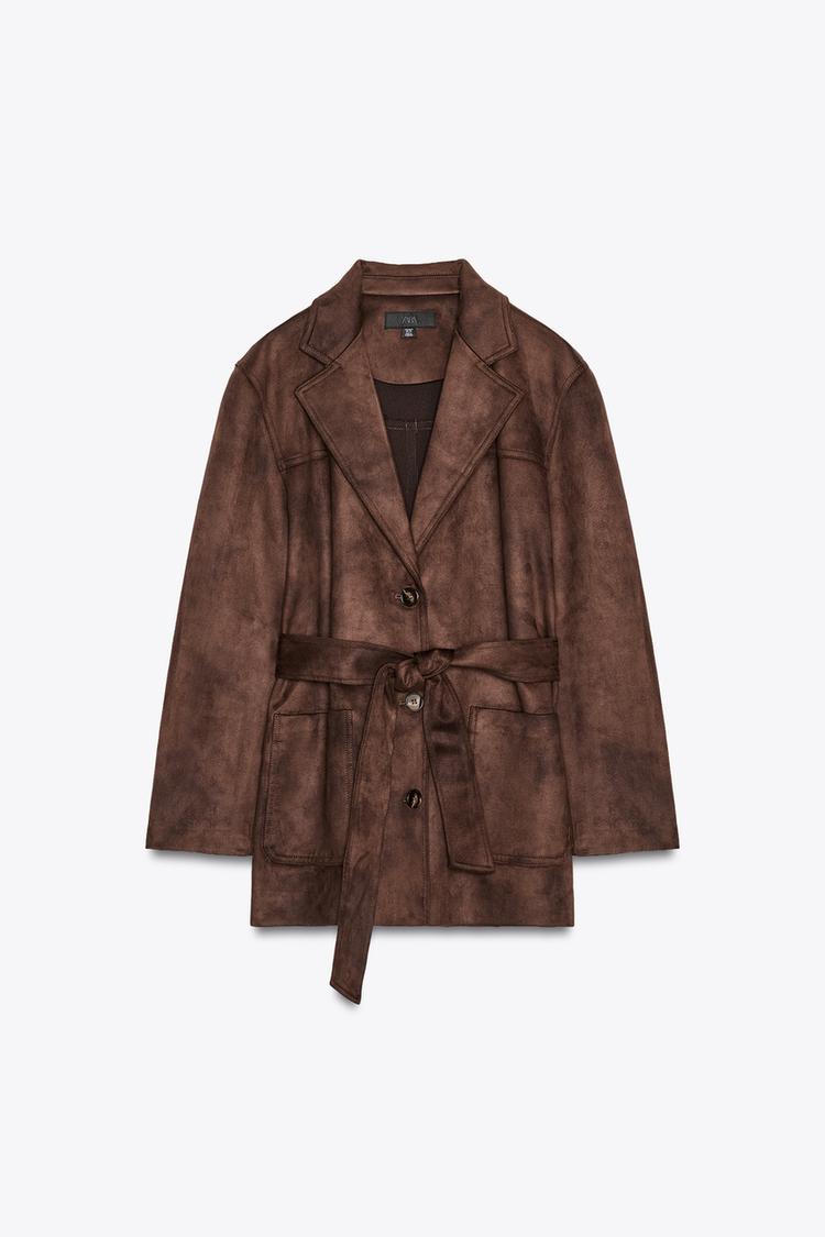 BROWN SUEDE EFFECT JACKET WITH BELT