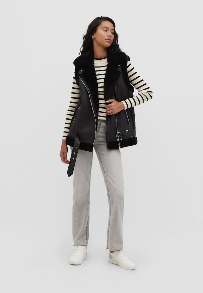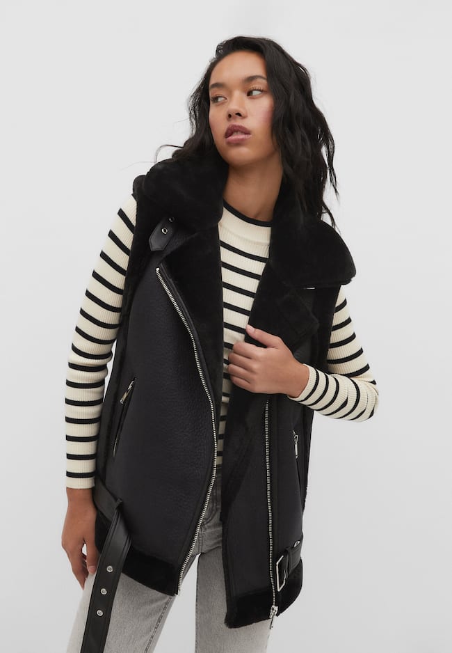 DOUBLE-FACED WAISTCOAT WITH BELT DETAILB