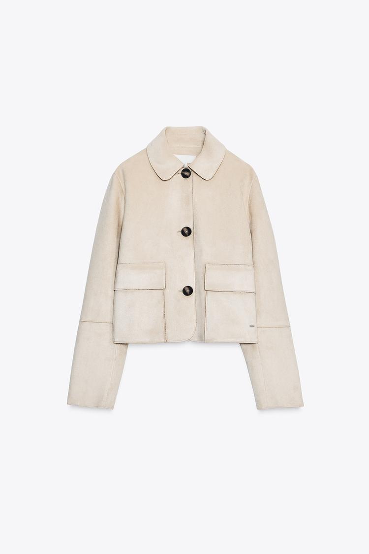 ژاکت یقهدار با آستینهای بلند. جیبهای جلو با لبههای تاشو. دکمههای جلو.