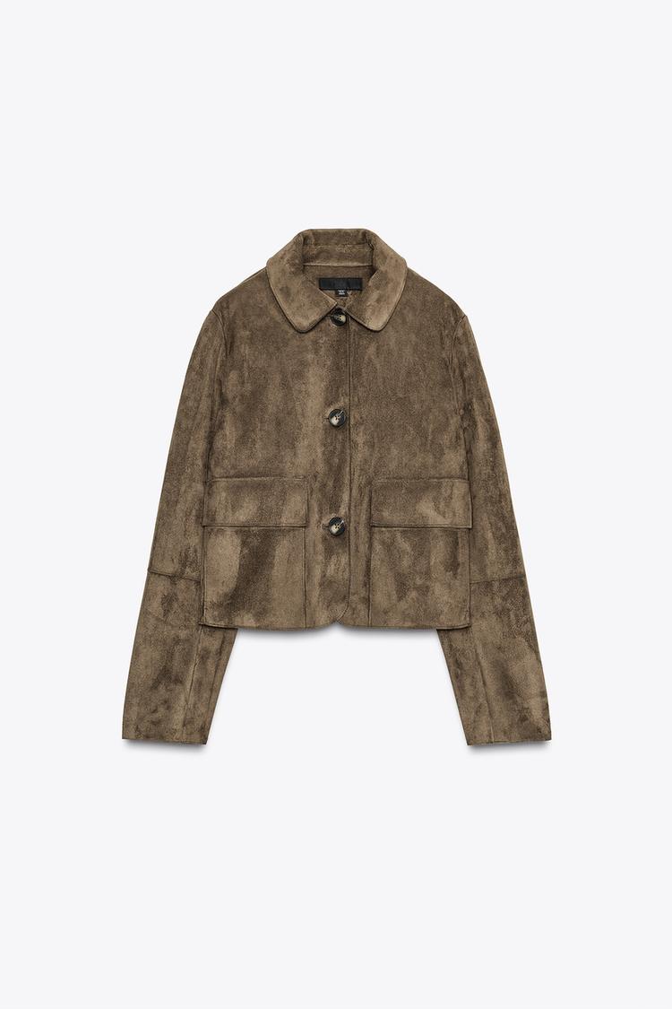ژاکت یقهدار با آستینهای بلند. جیبهای جلو با لبههای تاشو. دکمههای جلو.