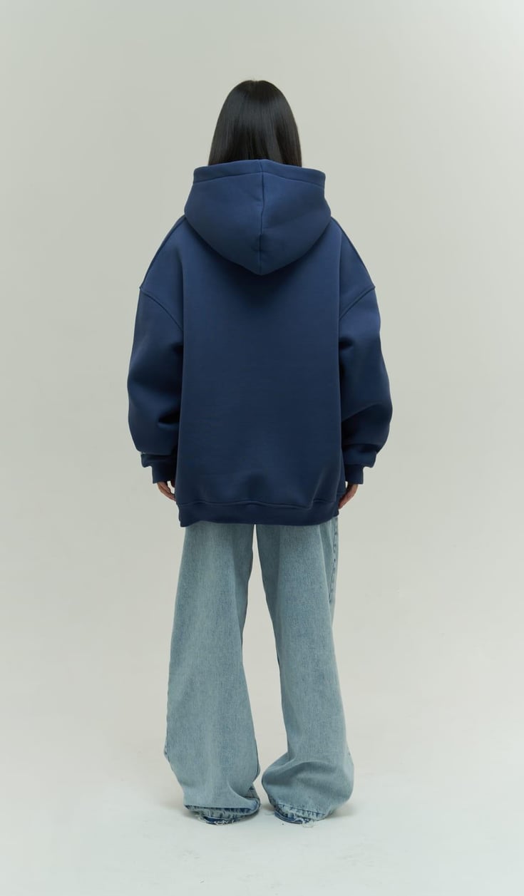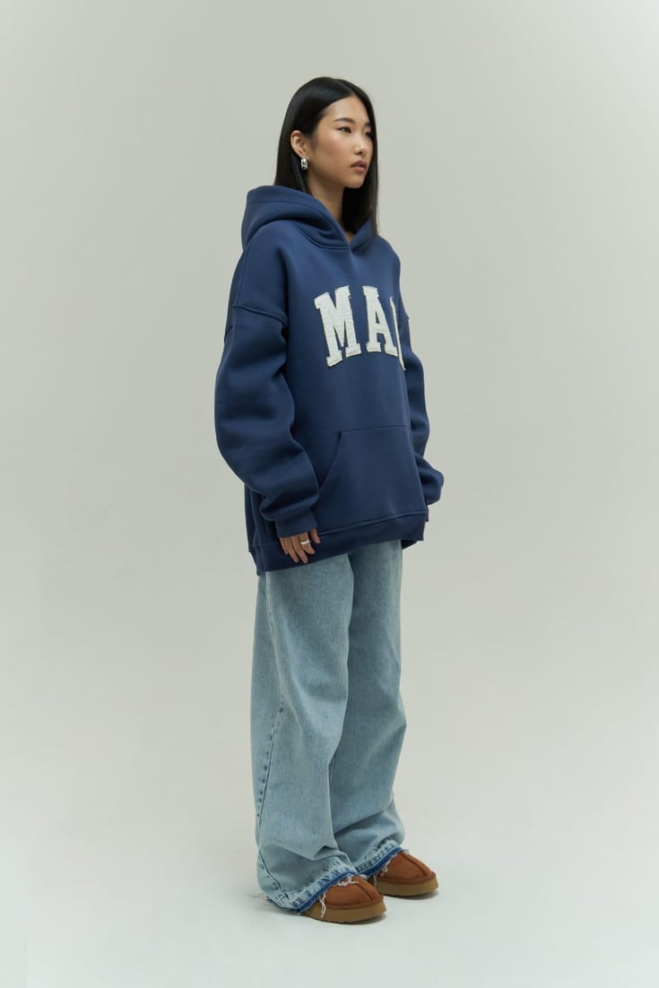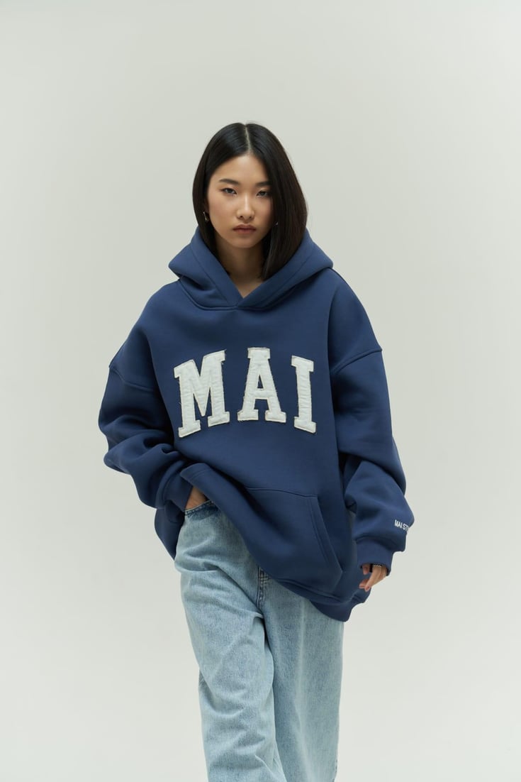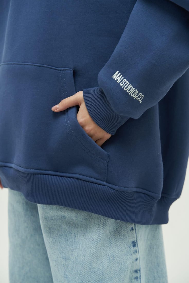 Malvo Mai Nakış Indigo Hoodie Sweatshirt