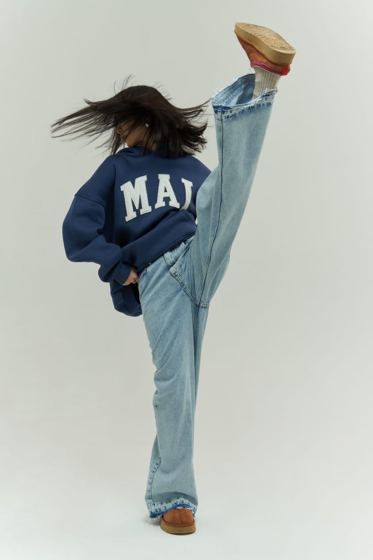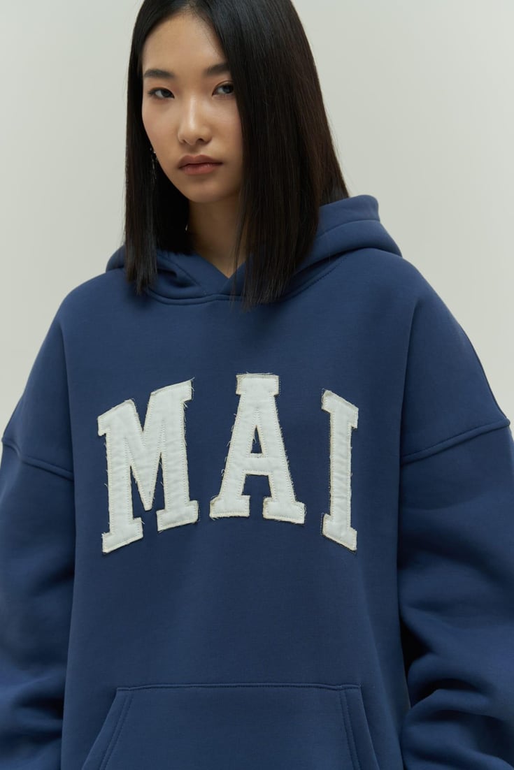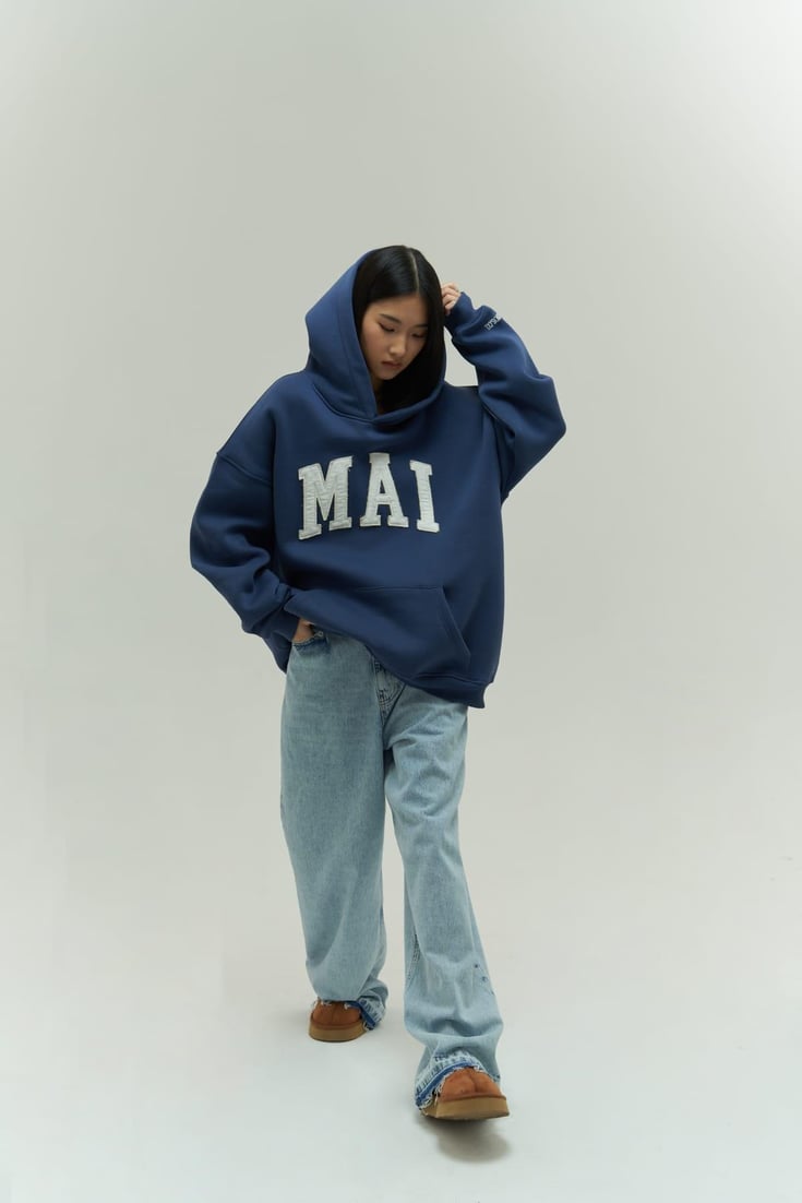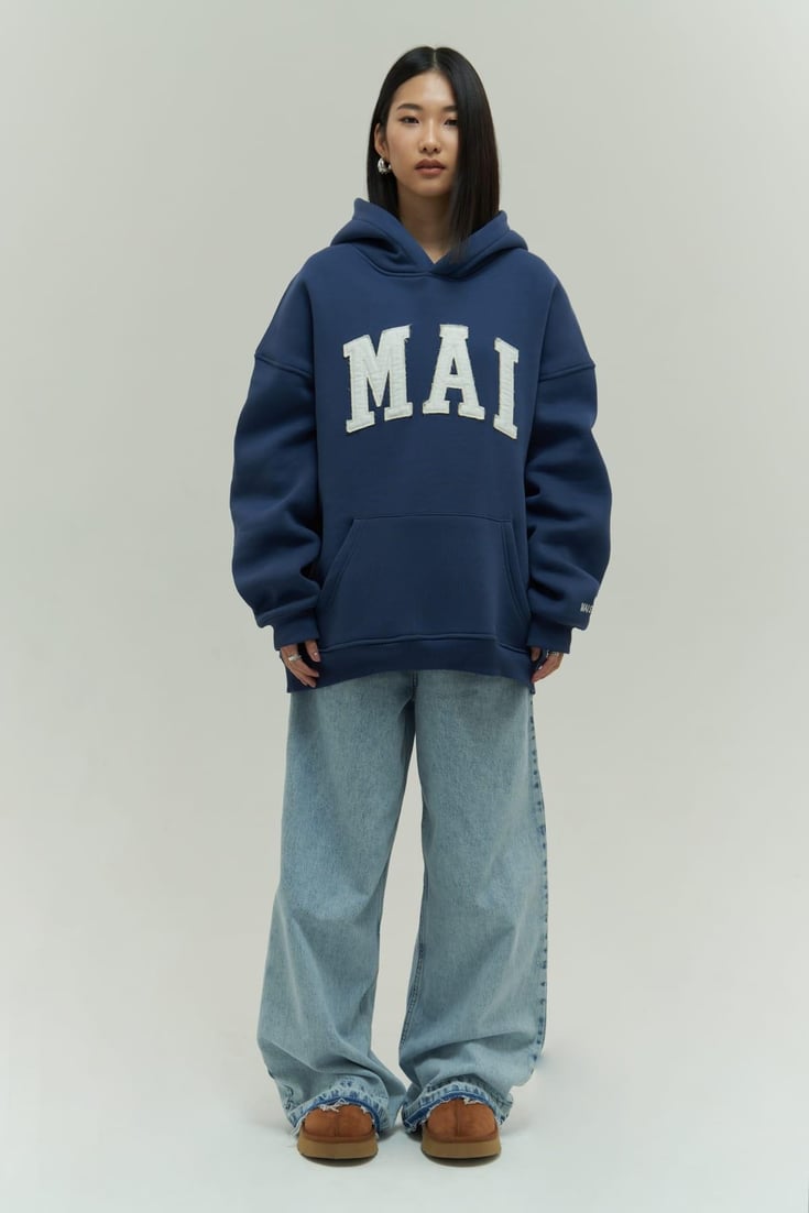 Malvo Mai Nakış Indigo Hoodie Sweatshirt