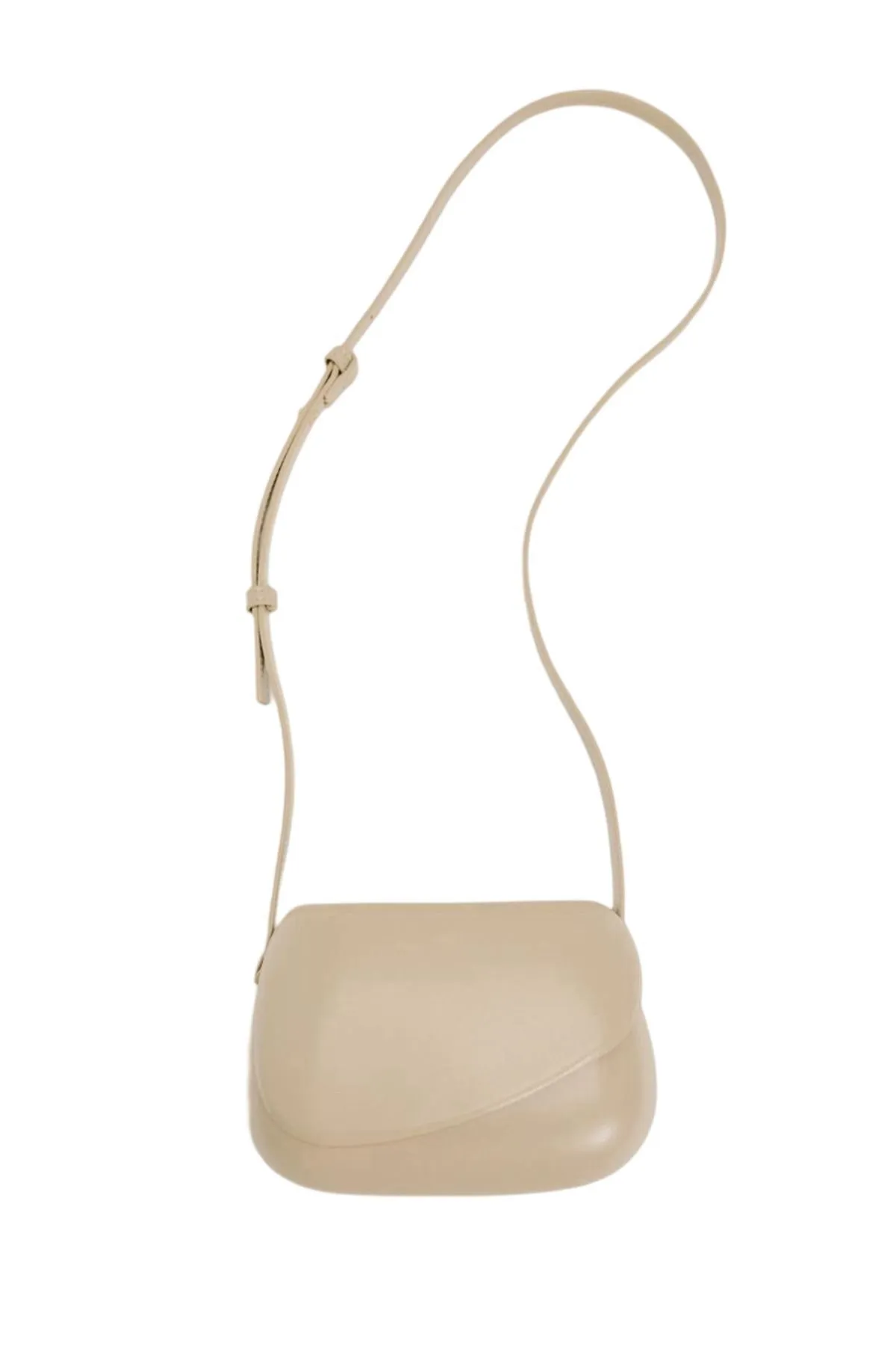کیف جعبه ای مینیمالیستی با دریچه نامتقارن و گیره مغناطیسی.